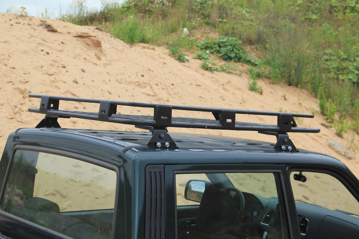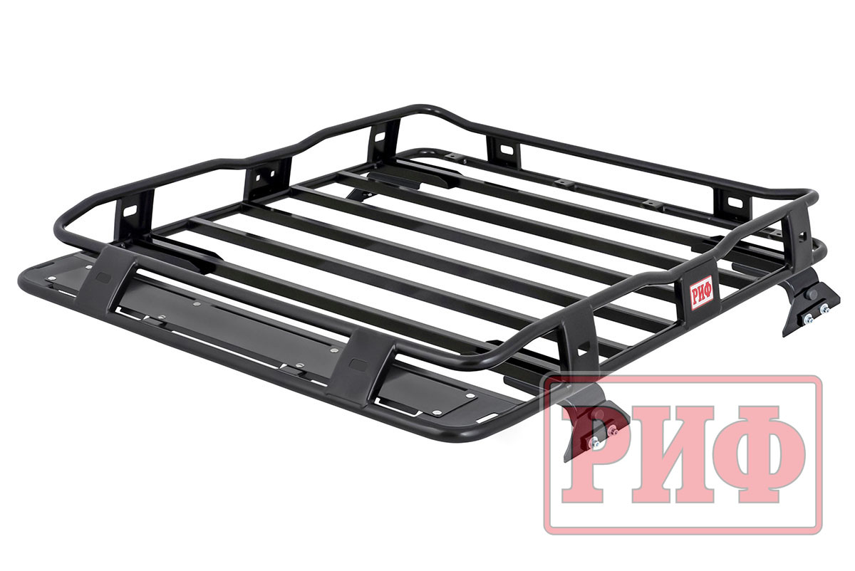 Без экспедиционного багажника невозможны экспедиции и путешествия – на багажник можно закрепить громоздкие сэнд-траки и хай-джек, поместить снаряжение, автомобильную палатку в жестком кофре, негабаритный и тяжелый груз, равномерно распределив его вес по крыше внедорожника. На багажник РИФ можно установить дополнительную оптику с любой желаемой стороны и в любом количестве. Расчётная нагрузка до 200 кг, однако необходимо руководствоваться инструкцией по эксплуатации автомобиля, где указан максимальный разрешенный вес груза, перевозимого на крыше.Черное порошковое покрытие защищает от коррозии в любых условиях эксплуатации и не боится самых агрессивных реагентов. Гарантия 3 года при отсутствии механических повреждений. Весь силовой обвес РИФ рассчитан на эксплуатацию в тяжелых условиях, и сертифицирован для использования в Российской Федерации; при установке никаких доработок автомобиля не требуется. Обращаем ваше внимание, что крепеж для багажник