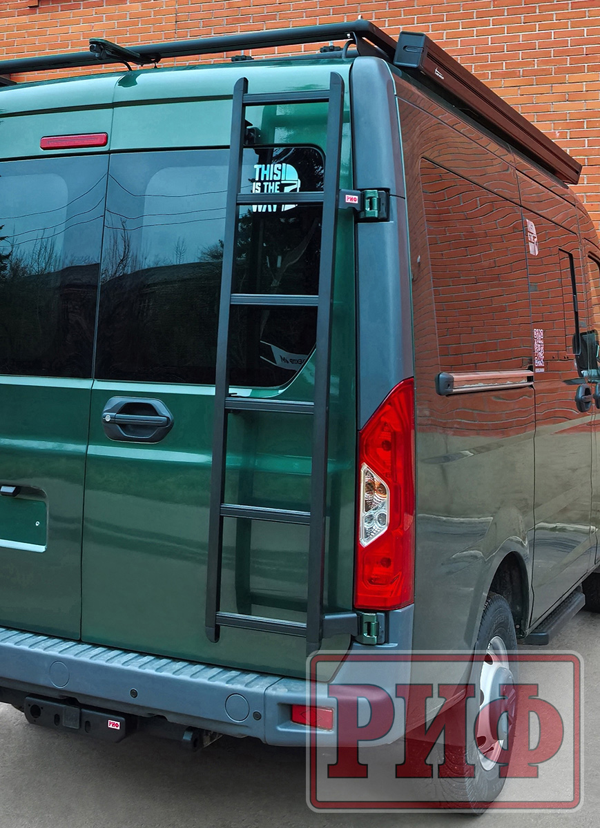 Внимание! Лестница монтируется на заднюю правую дверь, чтобы не перекрывать номер.