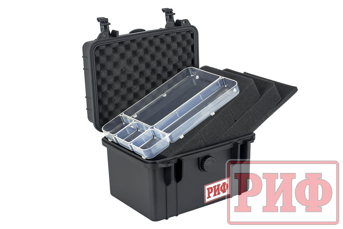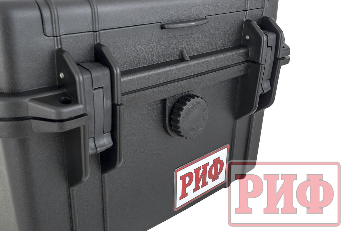 Защитные кейсы РИФ изготовлены из противоударного и чрезвычайно прочного пластика – его можно переехать на автомобиле, и ценное содержимое не пострадает. Кейсы абсолютно герметичны и содержимое кейса гарантировано защищено от доступа пыли и влаги благодаря резиновой прокладке и плотно закрывающейся крышке.