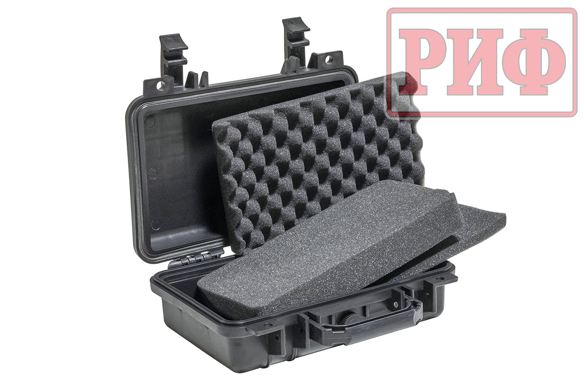 Защитные кейсы РИФ изготовлены из противоударного и чрезвычайно прочного пластика – его можно переехать на автомобиле, и ценное содержимое не пострадает. Кейсы абсолютно герметичны и содержимое кейса гарантировано защищено от доступа пыли и влаги благодаря резиновой прокладке и плотно закрывающейся крышке.