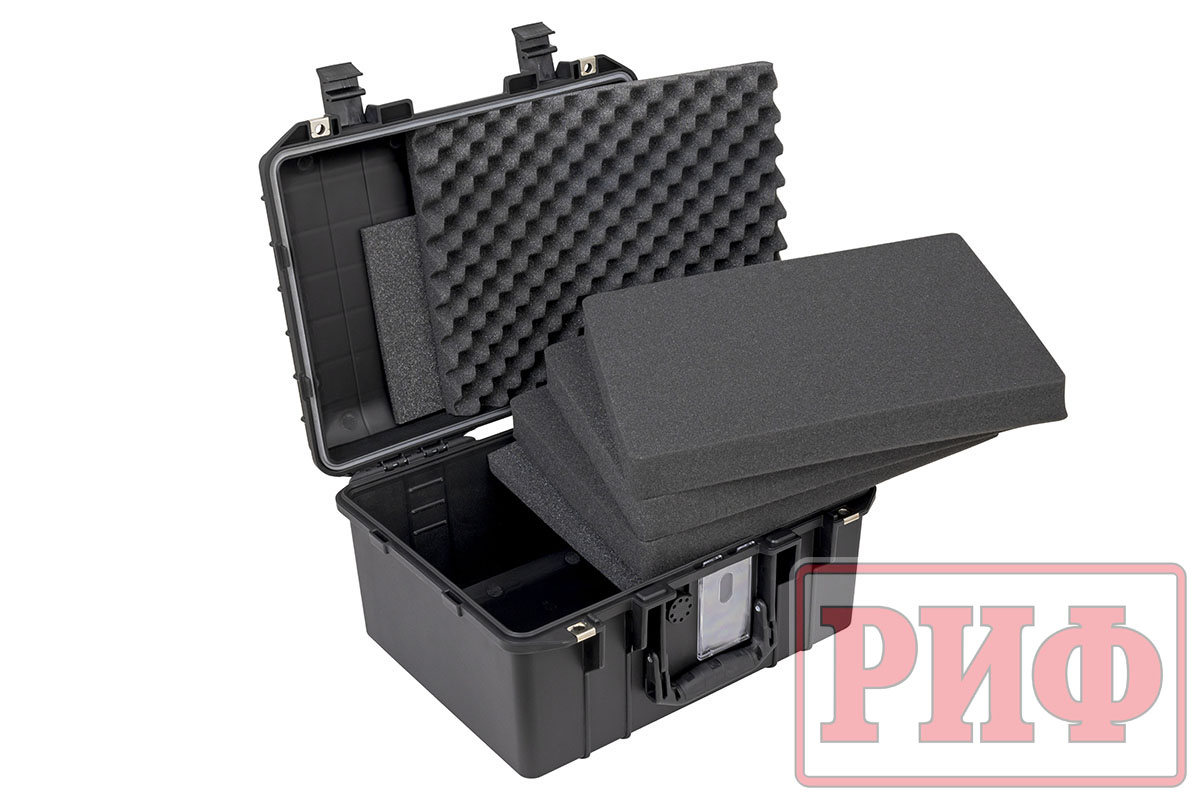 Защитные кейсы РИФ изготовлены из противоударного и чрезвычайно прочного пластика – его можно переехать на автомобиле, и ценное содержимое не пострадает. Cодержимое кейса защищено от доступа пыли и влаги благодаря резиновой прокладке и плотно закрывающейся крышке.