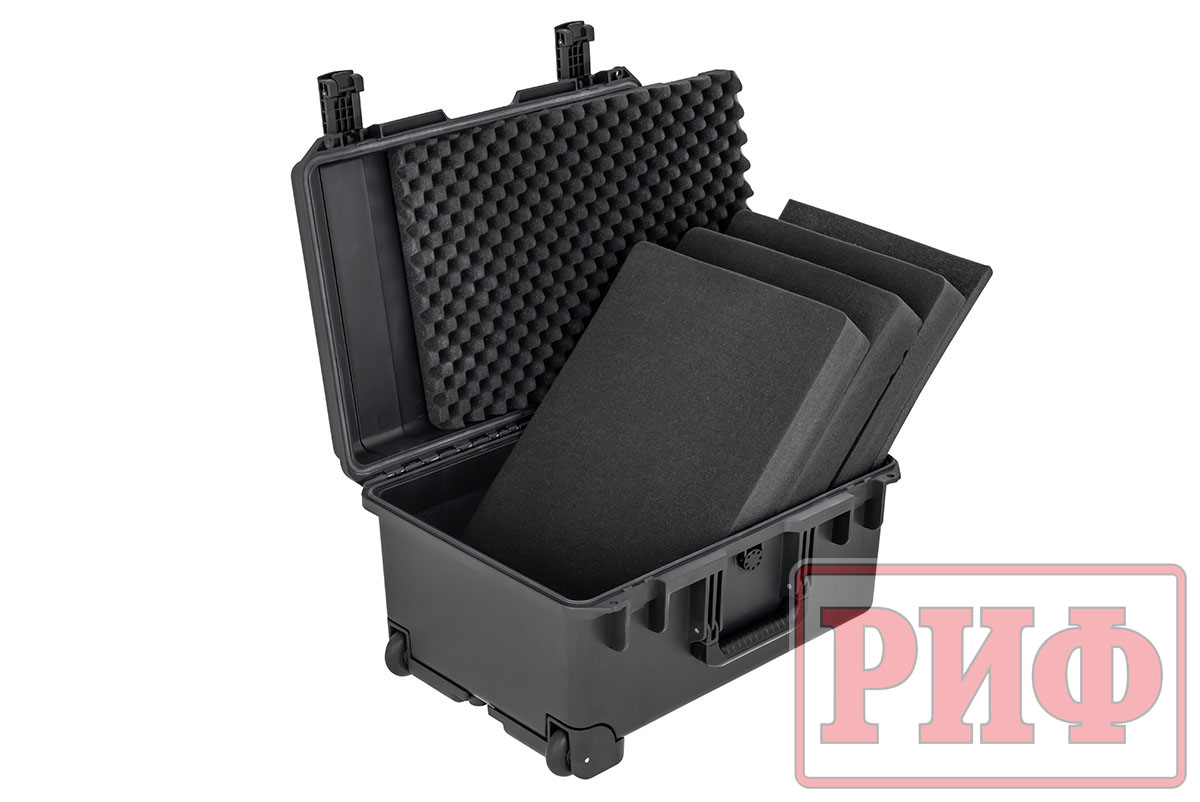 Защитные кейсы РИФ изготовлены из противоударного и чрезвычайно прочного пластика – его можно переехать на автомобиле, и ценное содержимое не пострадает. Кейсы абсолютно герметичны и содержимое кейса гарантировано защищено от доступа пыли и влаги благодаря резиновой прокладке и плотно закрывающейся крышке.
