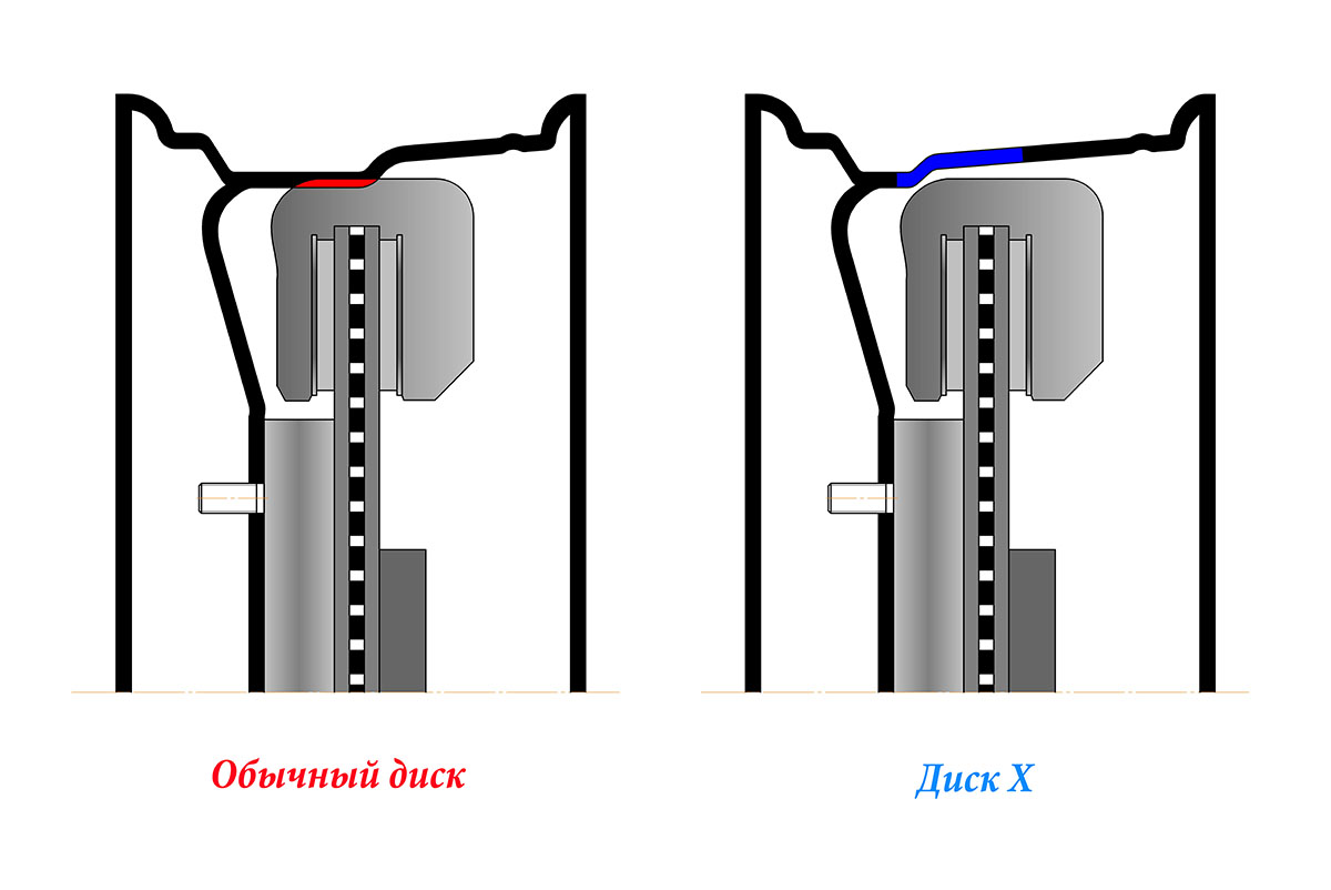 Модели дисков, содержащие индекс X в конце артикула, отличаются от обычных дисков измененным внутренним профилем. За счет увеличения внутреннего пространства, диски этой серии могут быть установлены в тех случаях, когда тормозной суппорт машины мешает установке диска с точно такими же параметрами.