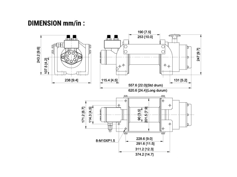 Лебедка гидравлическая Come Up HV-8 , максимальное тяговое усилие 3,6 т.
