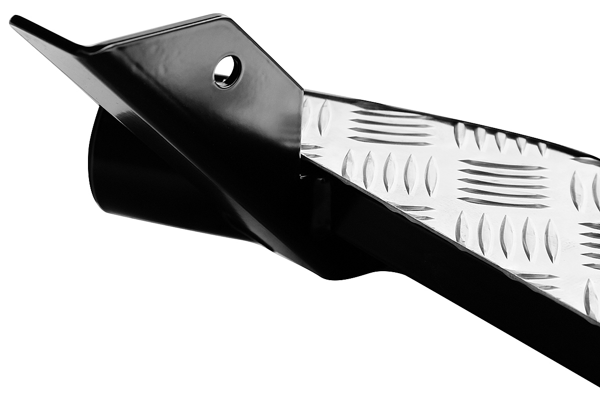 Конструкция порогов РИФ крайне прочна и долговечна, пороги рассчитаны на эксплуатацию в тяжелых условиях – они изготовлены из цельной стальной трубы без применения сварки. Пороги крепятся к раме с помощью стремянок.