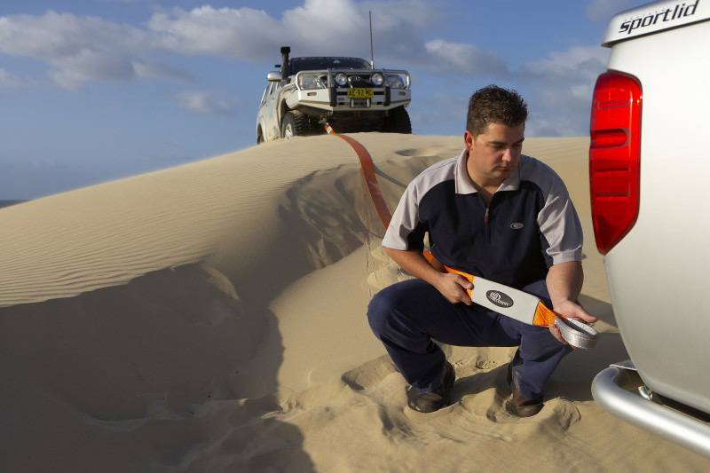 Это же свойство динамической стропы позволяет даже маломощному внедорожнику без особых усилий вытащить более крупный и тяжелый автомобиль. Весь эффект состоит в накапливании динамической стропой усилия рывка и плавной отдачи накопленного усилия на застрявший автомобиль. При этом благодаря плавно нарастающему усилию значительно снижается риск оборвать буксировочные проушины и повредить автомобиль.