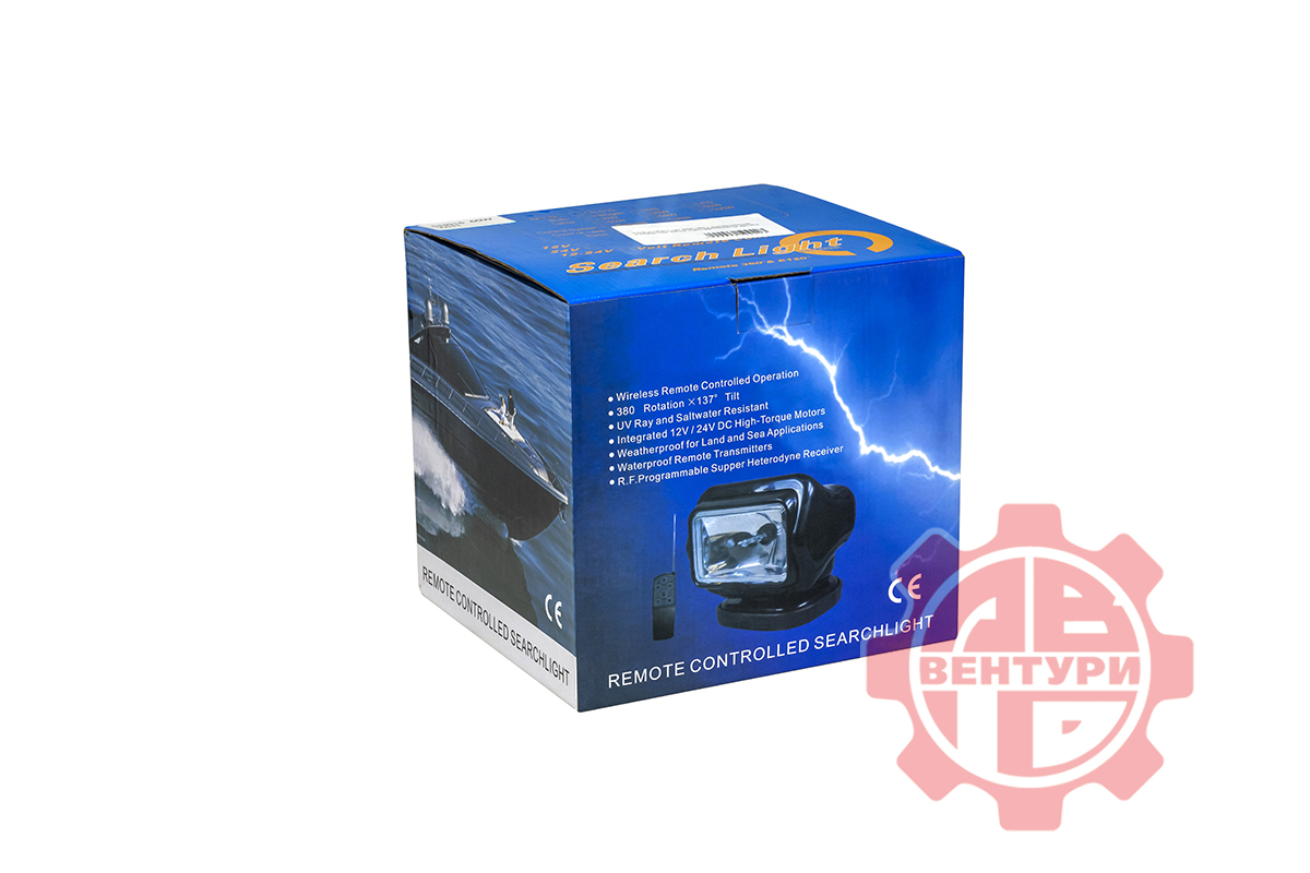 Фара-искатель 12V 50W LED с дистанционным управлением, черный (180х180х175мм) на магните.