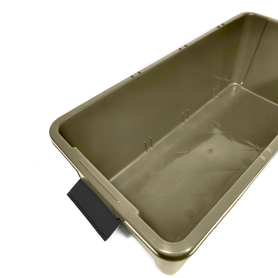 Крышка полностью съемная для комфотного использования. Для производства боксов используется полипропилен, обладающий прекрасными эксплуатационными свойствами. На нем можно спокойно сидеть или стоять, использовать в качестве опоры или подставки - расчетная нагрузка на крышку составляет 80 кг.