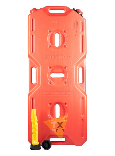 Основное отличие от канистры "Экстрим +" — две горловины, при сливе топлива одну крышку можно открутить для быстрого опорожнения канистры. Также данная канистра комплектуется носиком "Драйв" который прячется внутрь канистры.