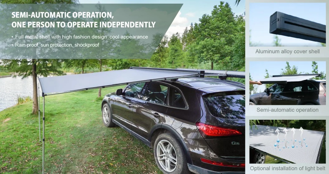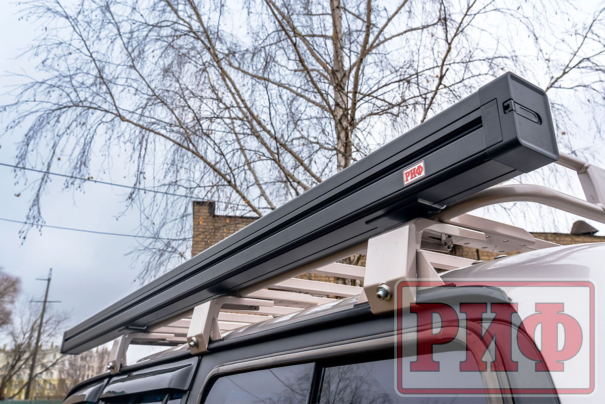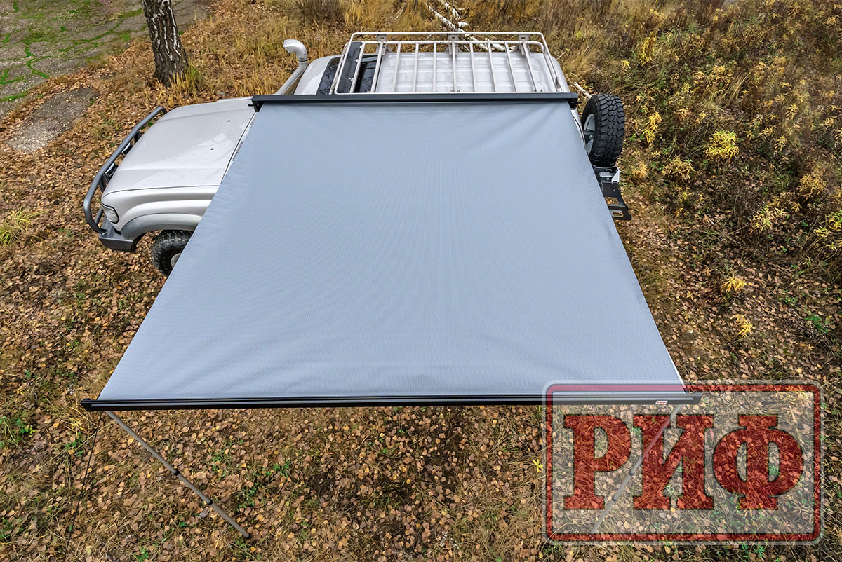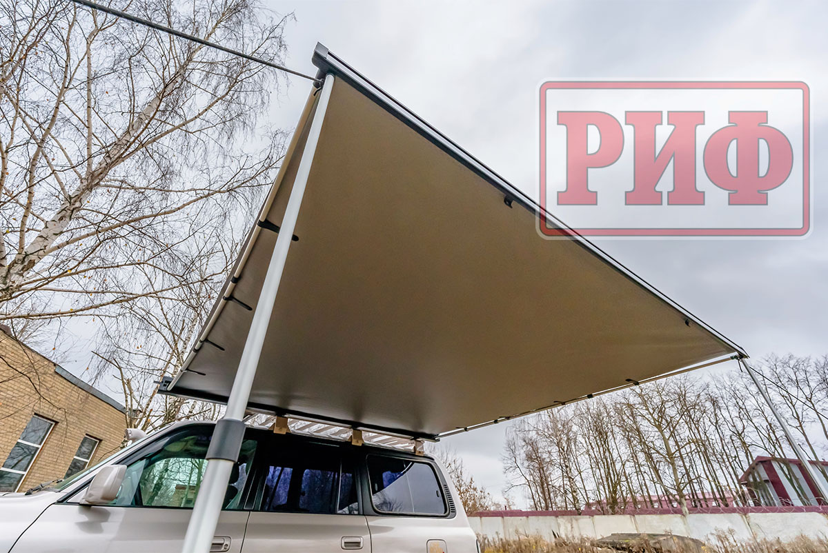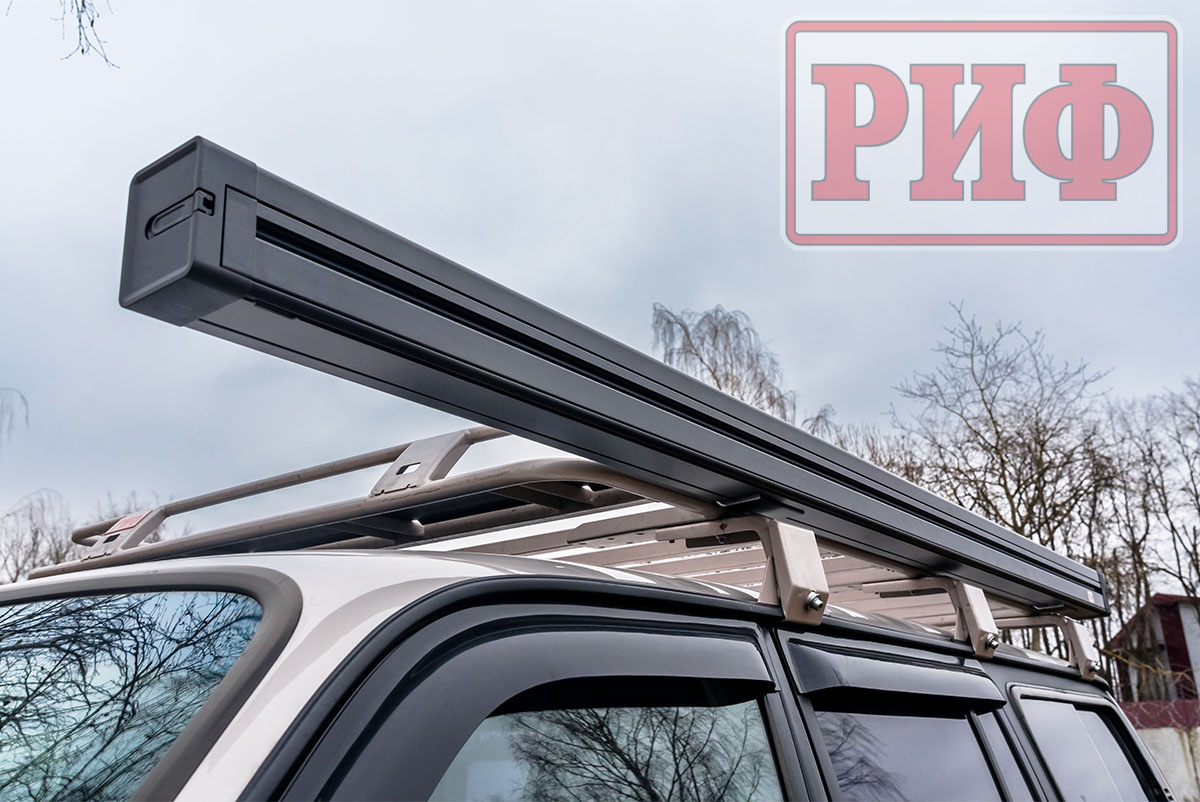 Автомобильная маркиза - это специальный навес, который устанавливается на автомобиль и служит для защиты от солнца и дождя. Жестко крепится к кузову автомобиля или автомобильному багажнику, удобно и быстро разворачивается в походное положение. В закрытом положении маркиза фиксируется специальными штырями по торцам корпуса кассеты, которые предотвращают случайное раскрытие тента третьими лицами.