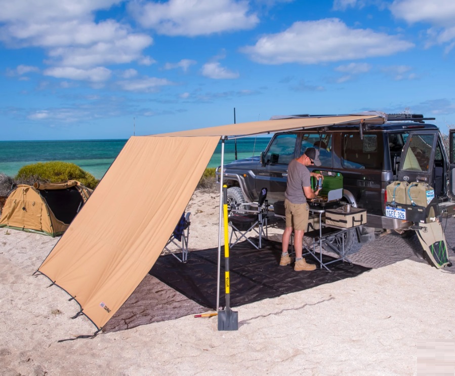 Ветрозащитные козырьки ARB touring, расположенные под углом к навесам, обеспечивают дополнительную защиту от дождя, а также обеспечивают дополнительную тень и защиту от солнца. Ветрозащитные козырьки ARB идеально подходят для создания дополнительной защиты и хранения таких предметов, как сумки и стулья, под навесом. Изготовлен из легкого полиуретанового полотна толщиной 300 г с полиуретановым покрытием. Водонепроницаем и защищен от ультрафиолета со степенью защиты UVP 50+. Разработан специально для навесов ARB. Для дополнительной фиксации тента при каждом порыве ветра закрепите точки крепления.