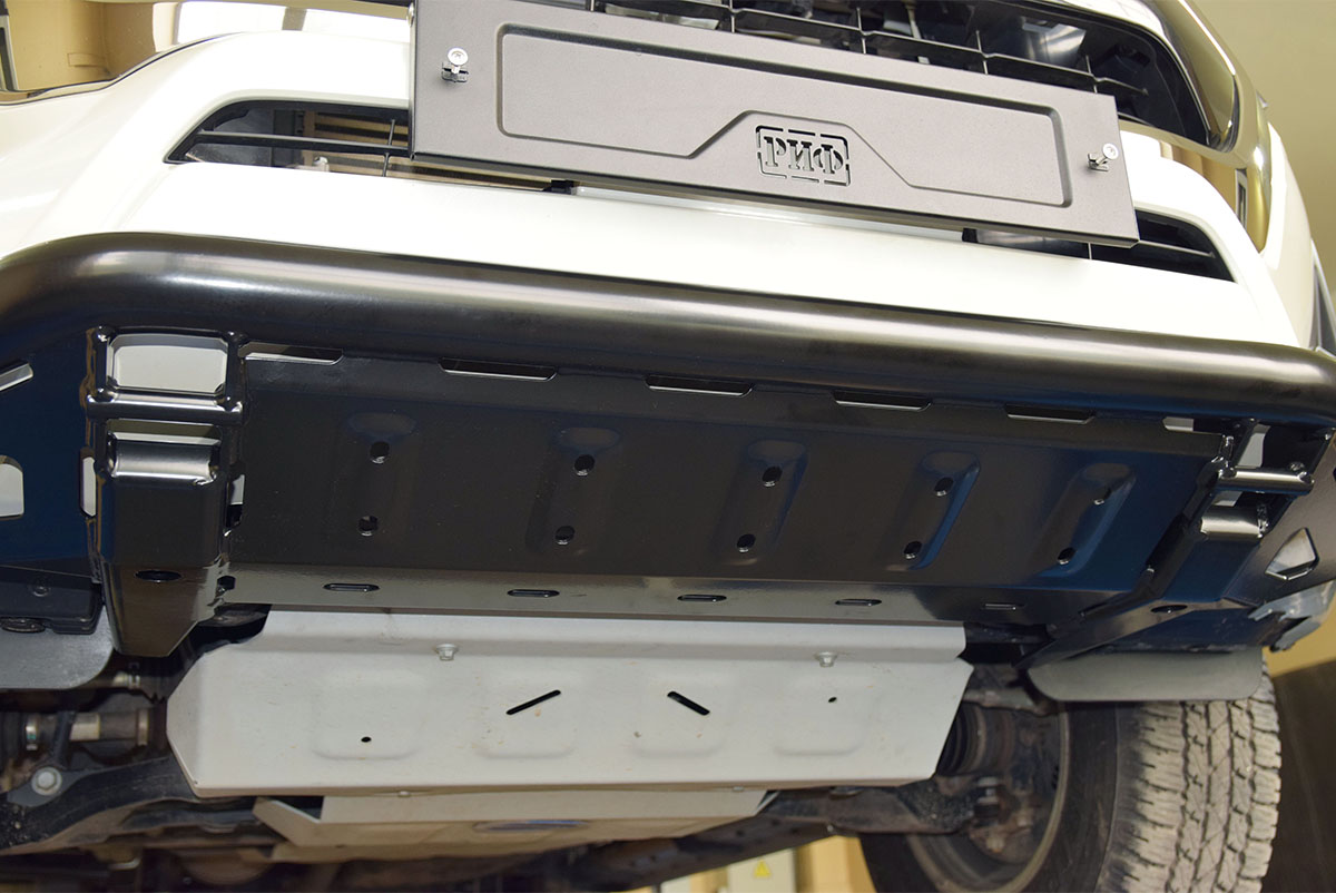 Передний силовой бампер защита бампера РИФ для Toyota Hilux 2020 – это не просто защита штатного бампера, а уникальная силовая конструкция, являющаяся одновременно и полноценным силовым бампером с интегрированной защитой радиатора!