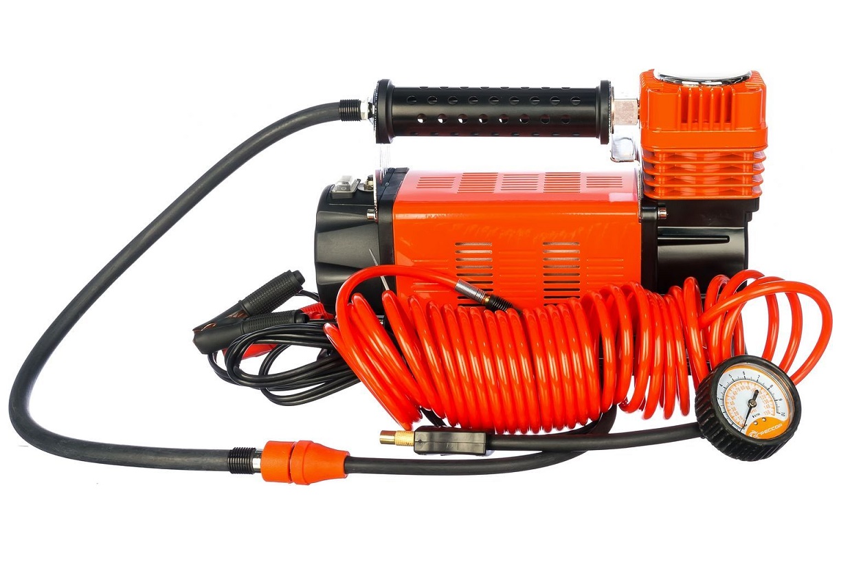 Компрессор поршневого типа, защита от перегрева, высокоточный двушкальный манометр диаметром 60 мм, блок электроуправления, перепускной клапан, набор переходников для накачивания велосипедов, мячей, матрацев, специальный набор переходников для накачивания лодок, удобная сумка для храниения.