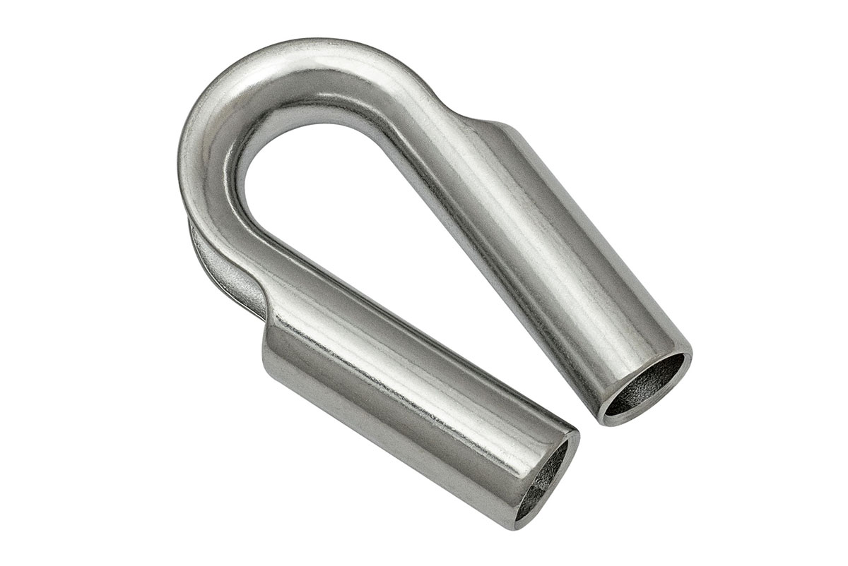 Коуш предназначен для установки на синтетический трос при изготовлении петли. Предохраняет трос от перетирания, делает петлю более плавной.