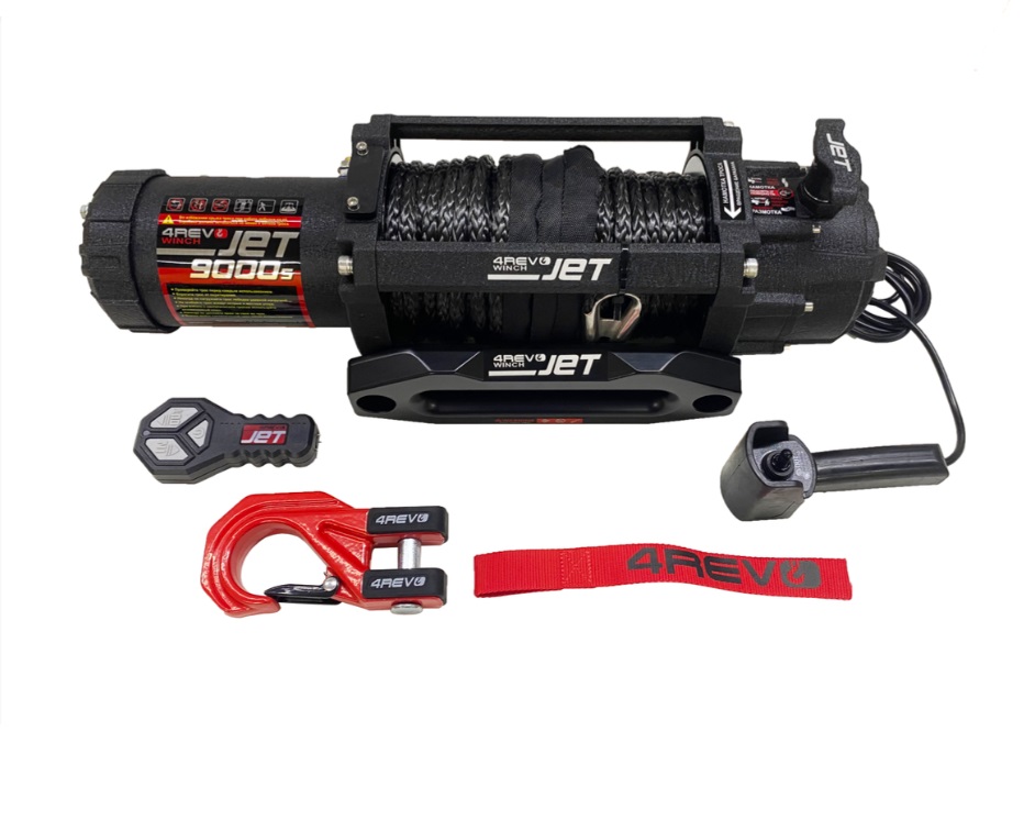 Лебедка автомобильная 4REVO JET 9000s 12В (Синтетический трос). Тяговое усилие 4090кг.