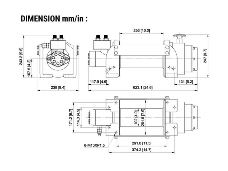 Лебедка гидравлическая Come Up HV-10. максимальное тяговое усилие - 4535 кг.