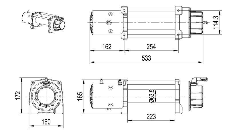 - Компактный размер удобен при скрытой установке лебедки. Также отлично подойдет в качестве съемной лебедки.