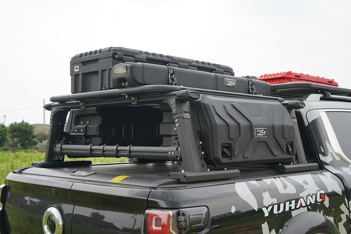Многофункциональный кунг-каркас Baja Racing представляет из себя пространственную регулируемую конструкцию из алюминиевых профилей которая крепится на борта кузова пикапа при помощи струбцин.
