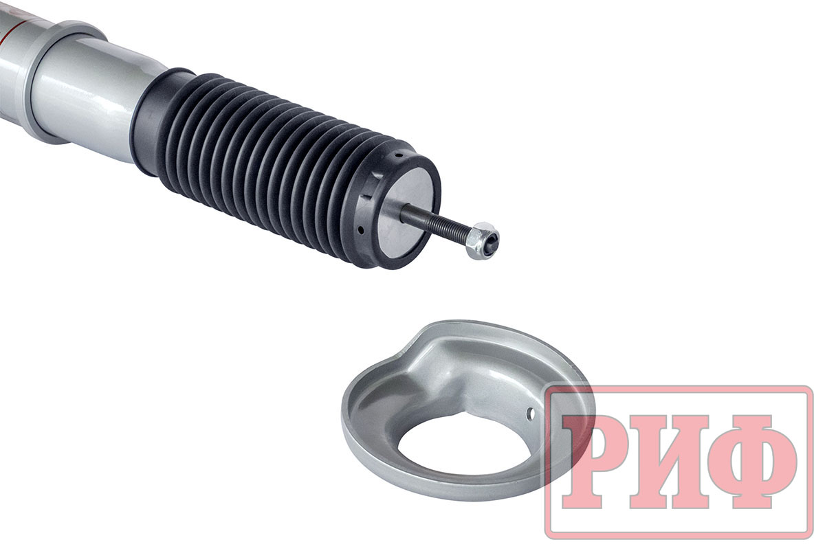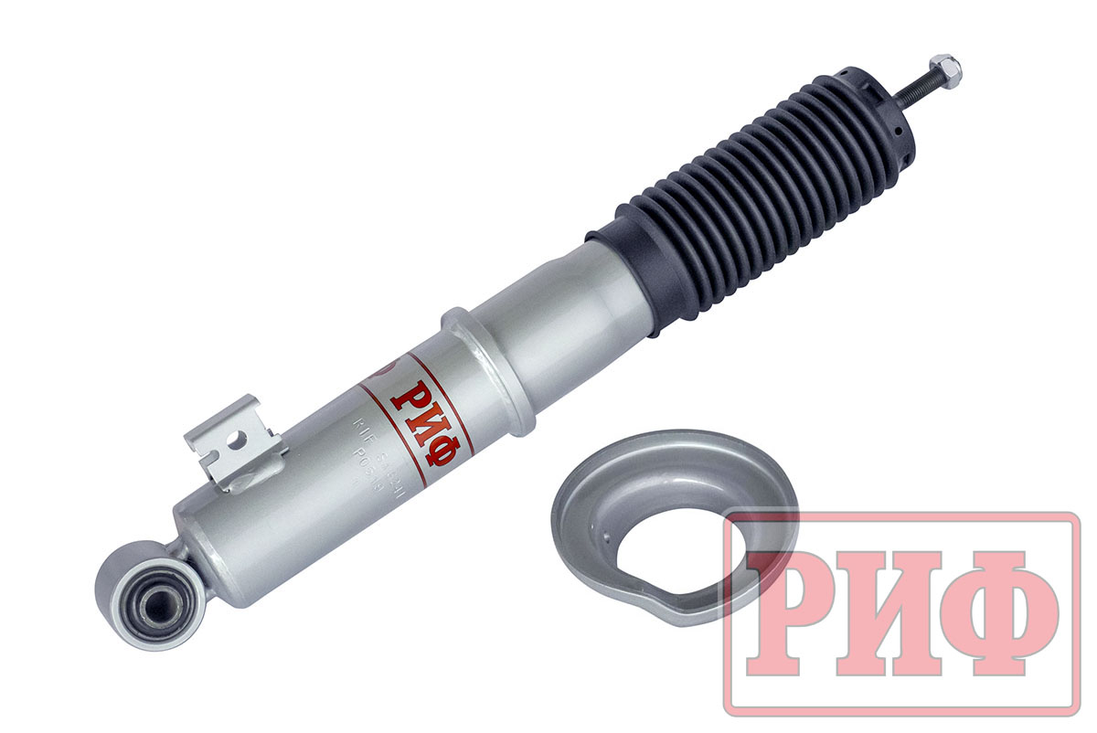 Газ, находящийся под давлением в компенсационной камере наружной трубы, позволяет повысить устойчивость амортизатора к высоким нагрузкам. Масло под давлением газа менее подвержено эффекту кавитации, а значит и меньше вспенивается, в отличие от обычного гидравлического амортизатора. Также, благодаря увеличенному масляному резервуару с большим количеством масла, усиленному штоку и поршню, амортизаторы "РИФ" обладают длительным рабочим ресурсом и обеспечивают великолепную стабильность рабочих характеристик при длительной езде по дорогам общего пользования, отличную курсовую устойчивость, хорошую артикуляцию подвески и приятную плавность хода на бездорожье.