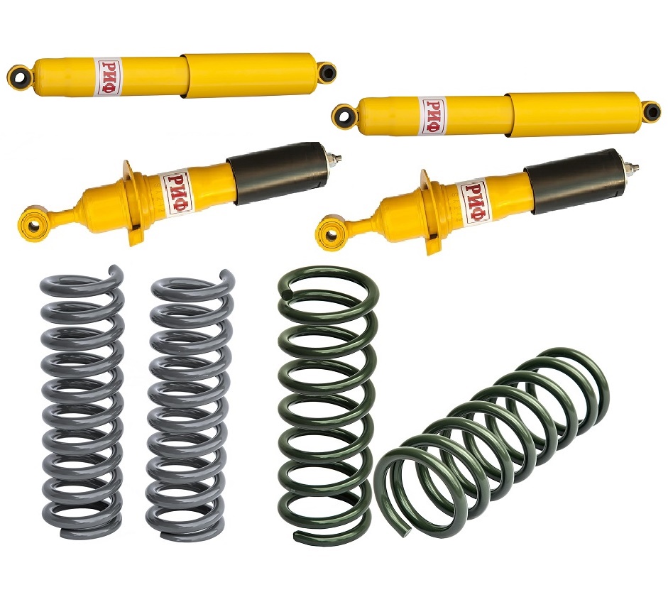 Все компоненты лифт-комплектов РИФ разработаны специально для эксплуатации внедорожника в тяжелых условиях на различных дорожных покрытиях. Рессоры, амортизаторы с технологией Foam Cell и пружины РИФ не только компенсируют вес установленного на внедорожнике дополнительного оборудования (бамперов, порогов, дополнительных топливных баков, лебедок и прочего), но также существенно повышают грузоподъемность автомобиля. Удлиненные стремянки и серьги РИФ произведены из высококач