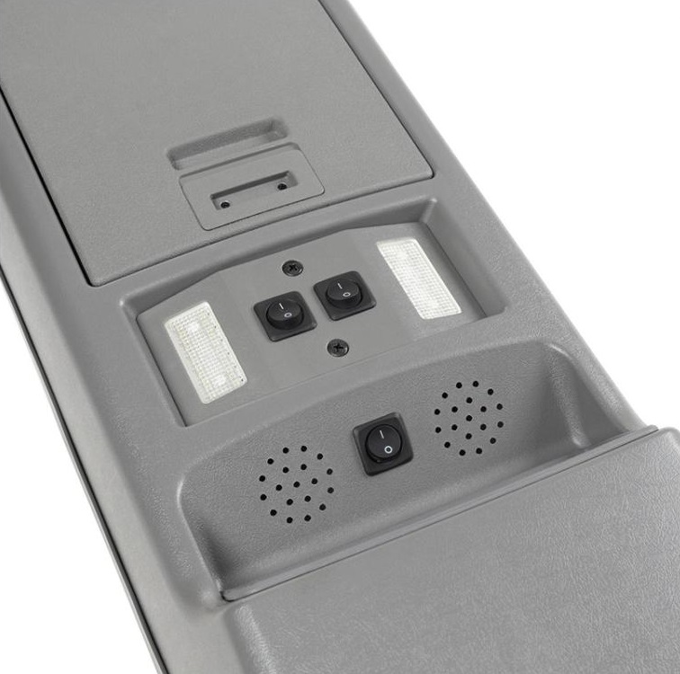Потолочные консоли оснащены двумя салонными L.E.D. светильниками, один для водителя и штурмана, другой для задних пассажиров.