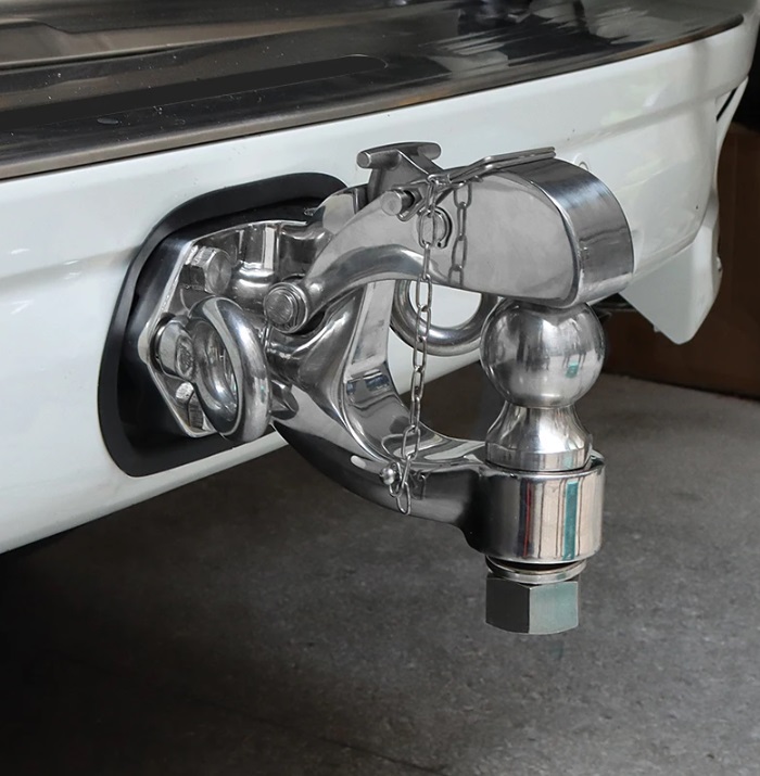 Универсальное сцепное устройство позволяет буксировать как классический легковой прицеп (сцепное устройство типа "шар") так и тяжелый прицеп с использованием жесткой сцепки. Очень удобен при эксплуатации на бездорожье.