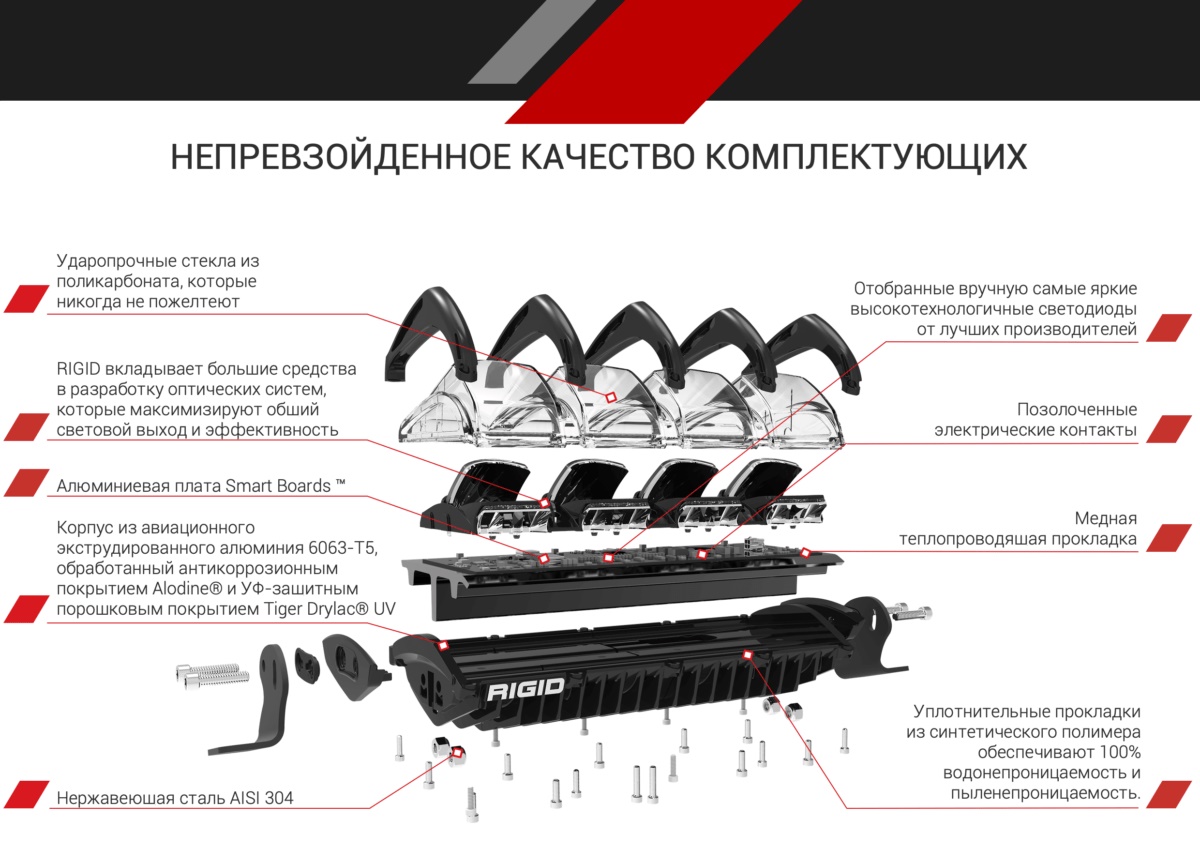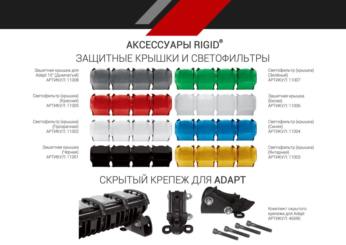 RIGID Adapt 10″ – первая в мире запатентованная светодиодная адаптивная технология, которая обеспечивает максимальный комфорт при использовании на бездорожье. Фиксированные режимы работы только дальнего или ближнего света, уходят в прошлое.