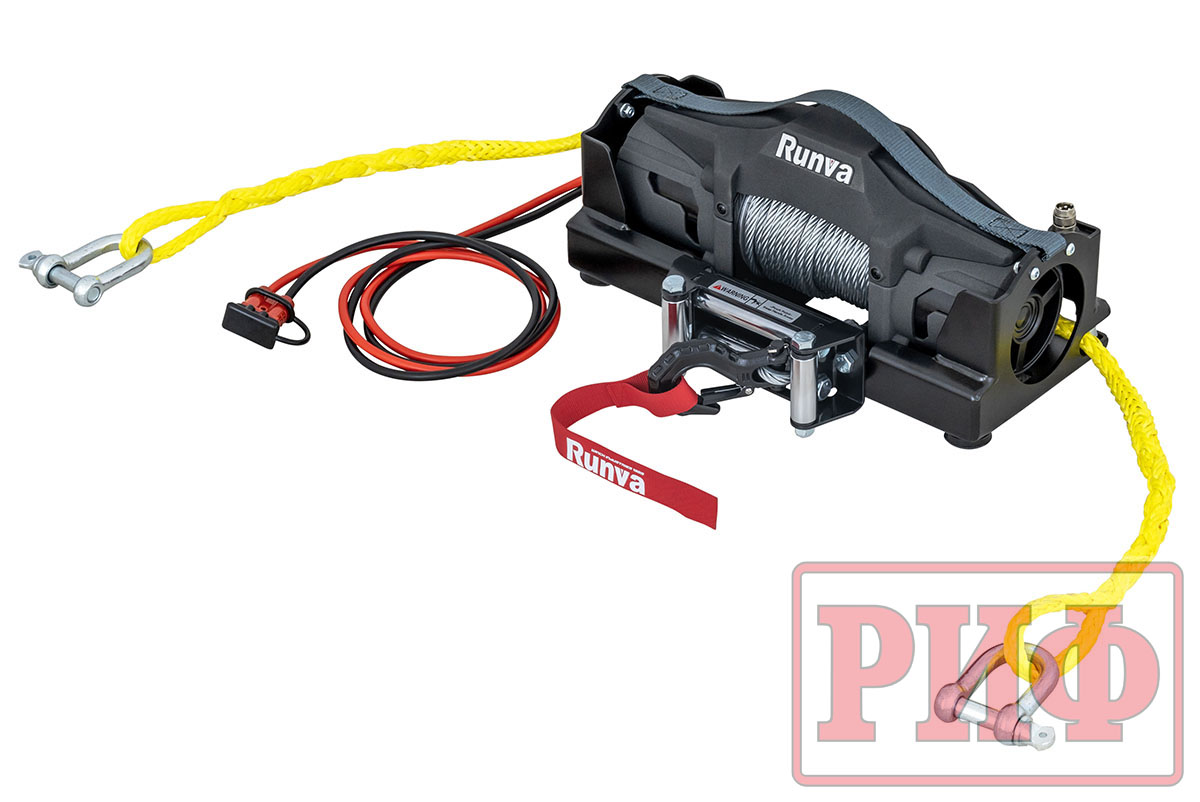 Переносная лебёдка РИФ представляет из себя полностью готовый к эксплуатации комплект из лебёдки с подключенными к ней проводами, установленной на площадку РИФ, с закрепленными на ней направляющими для троса. Все собрано уже на заводе и готово к эксплуатации. Длинные провода и крепежные элементы упакованы в удобную прочную капроновую сумку.