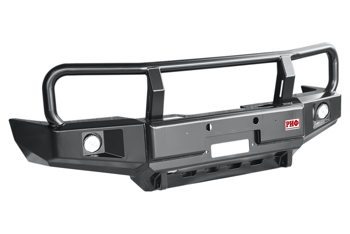 Передний силовой бампер с защитной дугой РИФ служит для защиты автомобиля на бездорожье и в городе. В случае контакта или легкого столкновения с препятствием в виде камней, бревен, пней, колеёй или незадачливыми водителями риск получить серьезные повреждения машины существенно уменьшается, а это очень важно в экспедициях и в повседневной жизни. Бампер с кенгурятником не только защитит, но и украсит внедорожник благодаря эффектному и элегантному дизайну.
