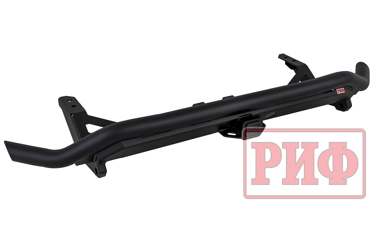 Задний силовой бампер/защита штатного бампера РИФ надежно защитит кузов автомобиля на бездорожье или в городе в случае непредвиденных инцидентов. Бампер оборудован упорами под хай джек и буксирными проушинами для работы с рывковой или буксировочной стропой.
