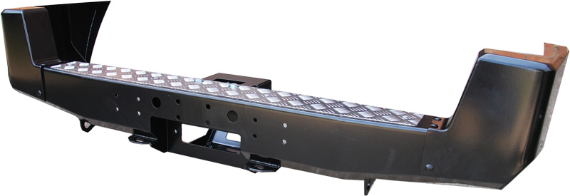 Задний силовой бампер от производителя РИФ с площадкой под лебедку для внедорожника устанавливается на автомобиль без его переделок и обеспечивает качественную и надежную защиту задней части внедорожника.
