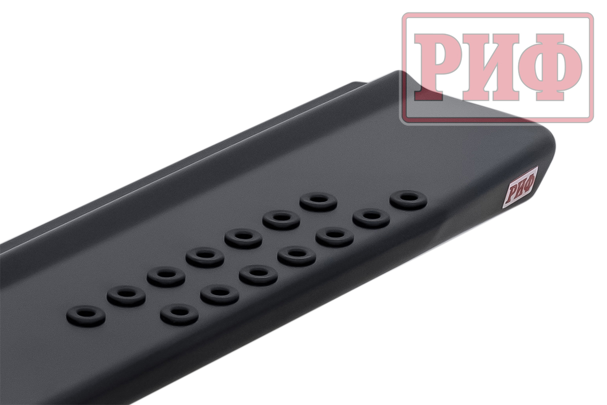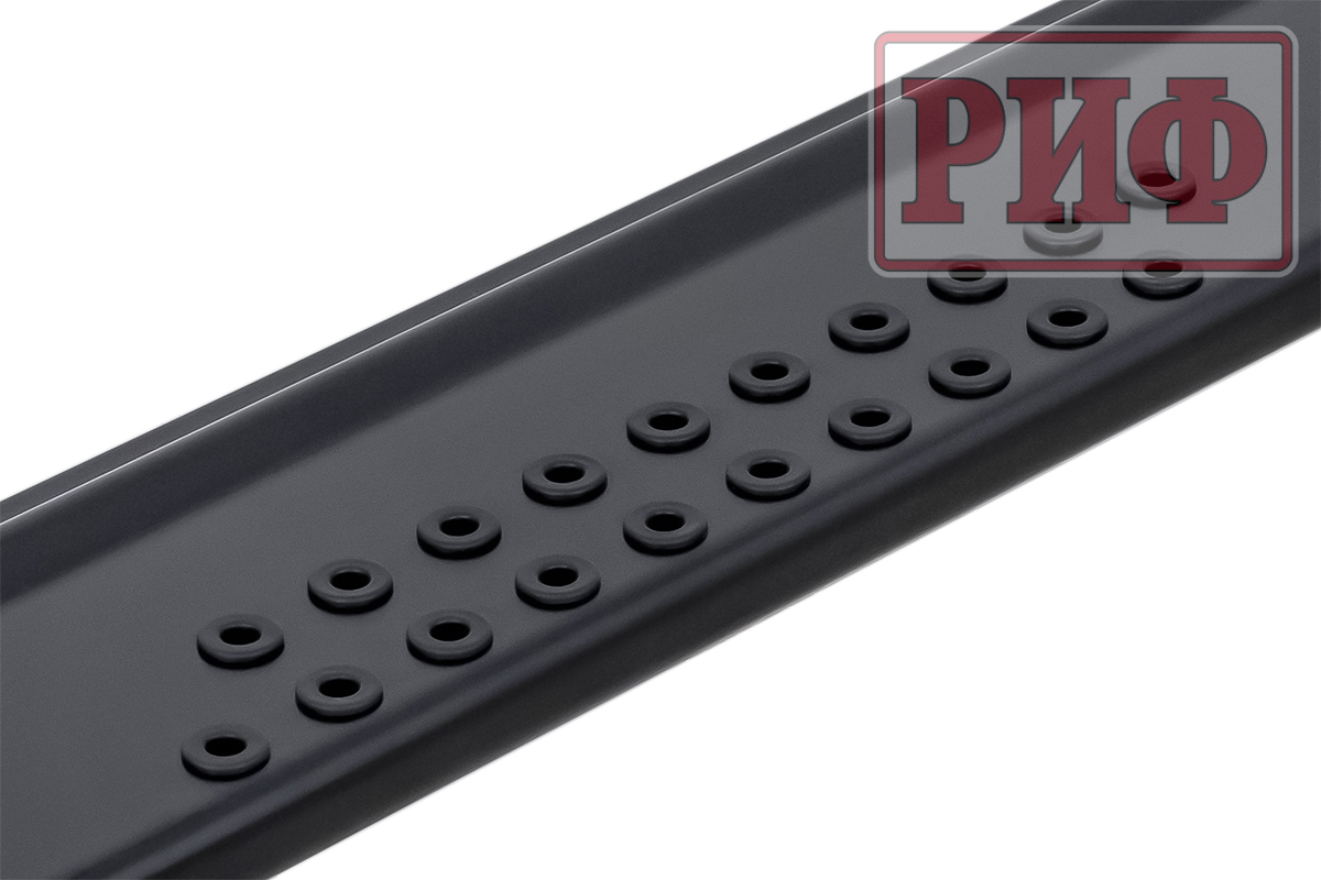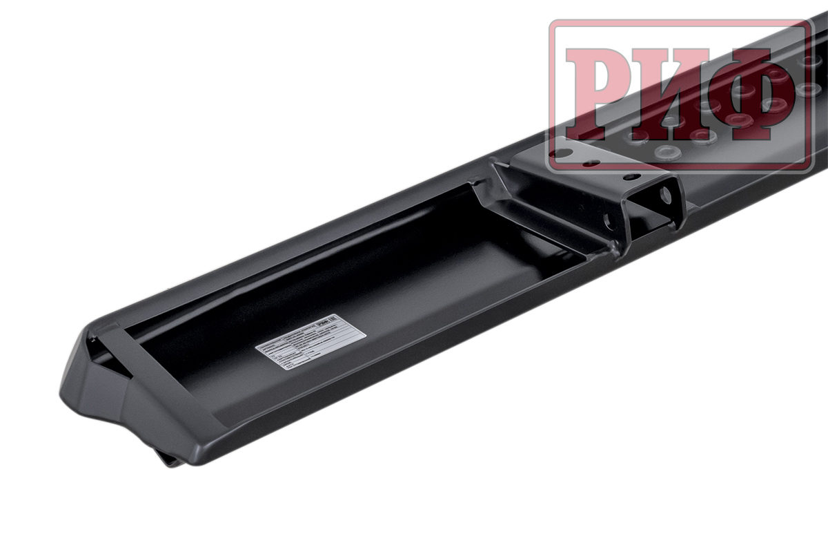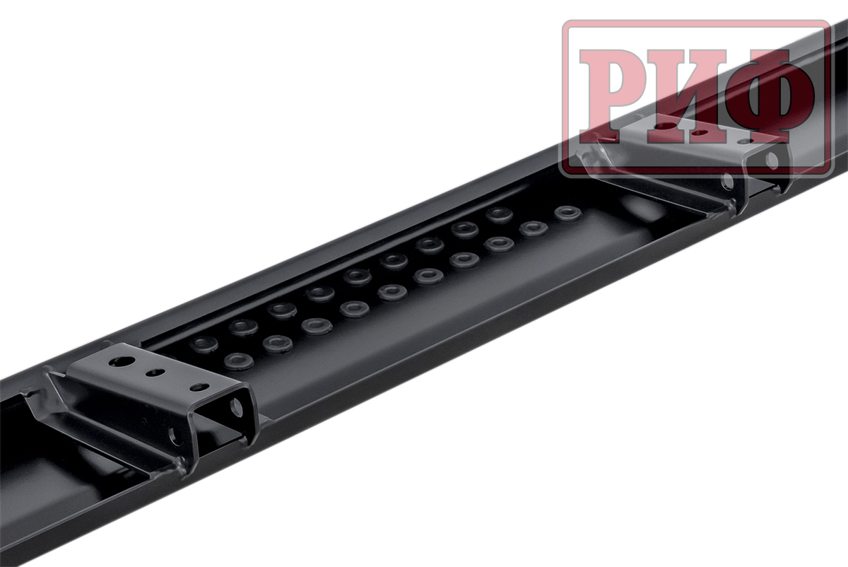 Конструкция порогов РИФ крайне прочна и долговечна, пороги рассчитаны на эксплуатацию в тяжелых условиях – они изготовлены из цельной стальной трубы без применения сварки. Пороги крепятся к раме с помощью стремянок.