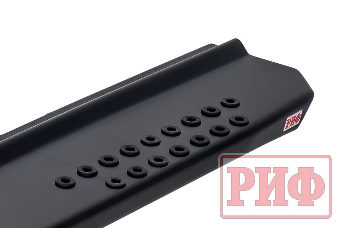 Конструкция порогов РИФ крайне прочна и долговечна, пороги рассчитаны на эксплуатацию в тяжелых условиях – они изготовлены из цельной стальной трубы без применения сварки. Пороги крепятся к раме с помощью стремянок.