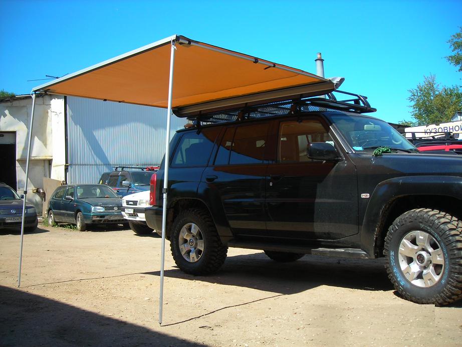 Солнечным днем маркиза автомобильная защитит туристов от палящих лучей, пасмурным – от холодных дождевых капель и снежной крупы.