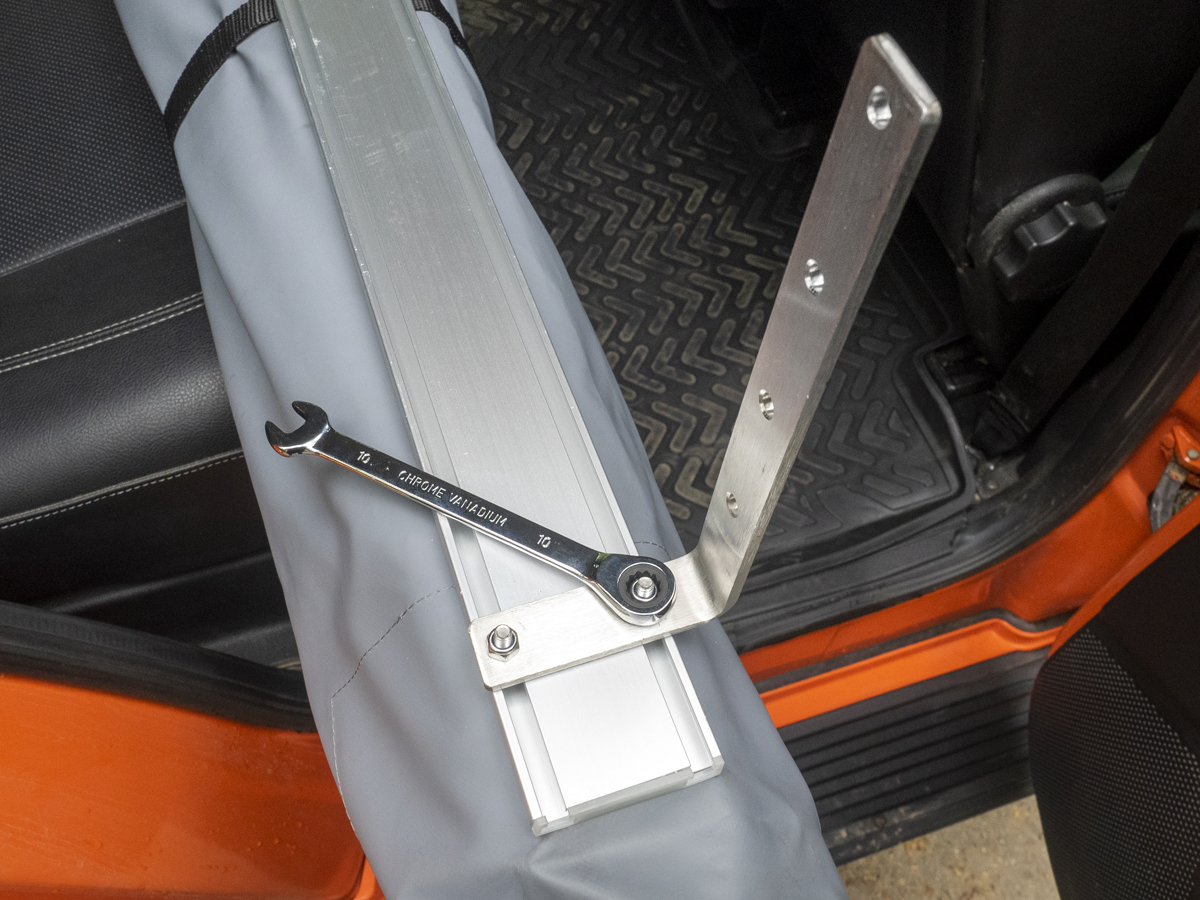 Габариты в разобранном виде: 2,5(вдоль багажника) х 2,5м на вытяжку.