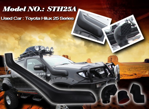 Шноркель монтируется на передней части автомобиля, как правило, справа или слева на капоте, выводя воздухозаборник наверх вдоль передней стойки кузова.