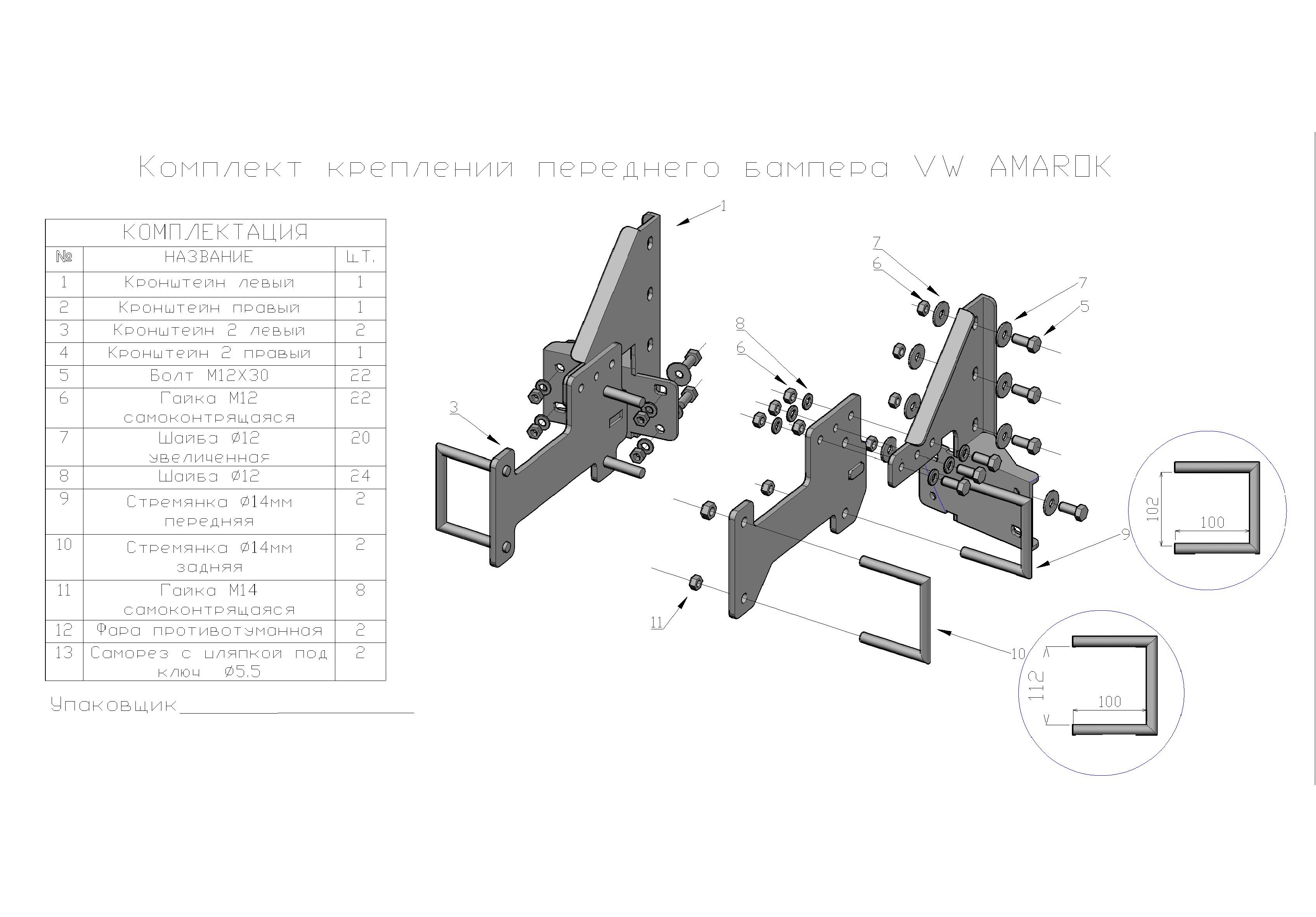 Бампер РИФ силовой передний VW Amarok с защитной дугой без доп. фар